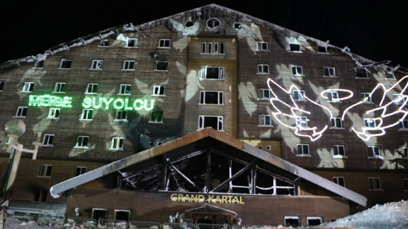 Yangında hayatını kaybeden 78 kişinin isimleri otelin dış cephesine tek tek yansıtıldı. Otelin önüne fotoğraflar ve isimlerin yer aldığı pankartlar asıldı, karanfiller bırakıldı.